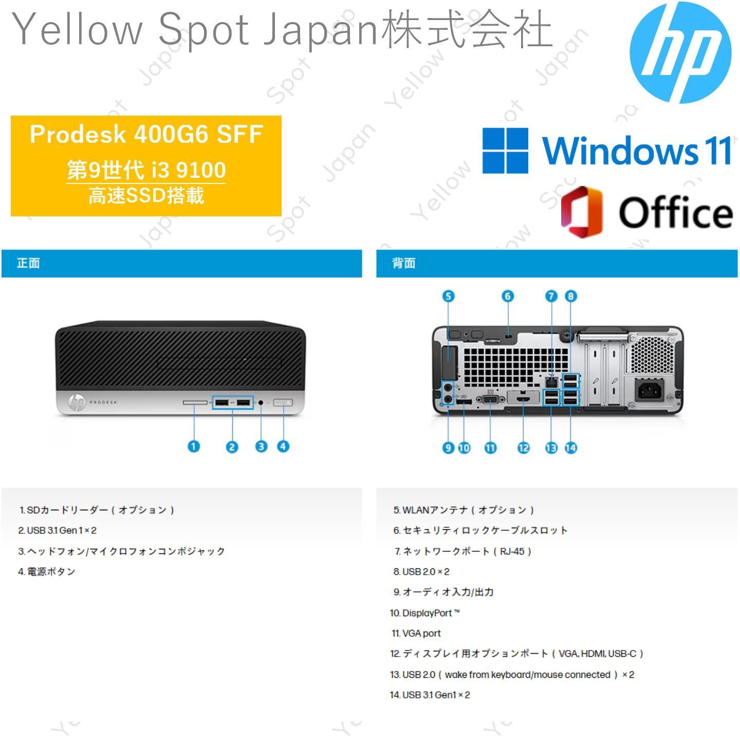 PC HP デスクトップ パソコンPC ProDesk 400 G 6 SFF i 3 9100 8 256 SSD win 11 pro 搭載 整備済み品