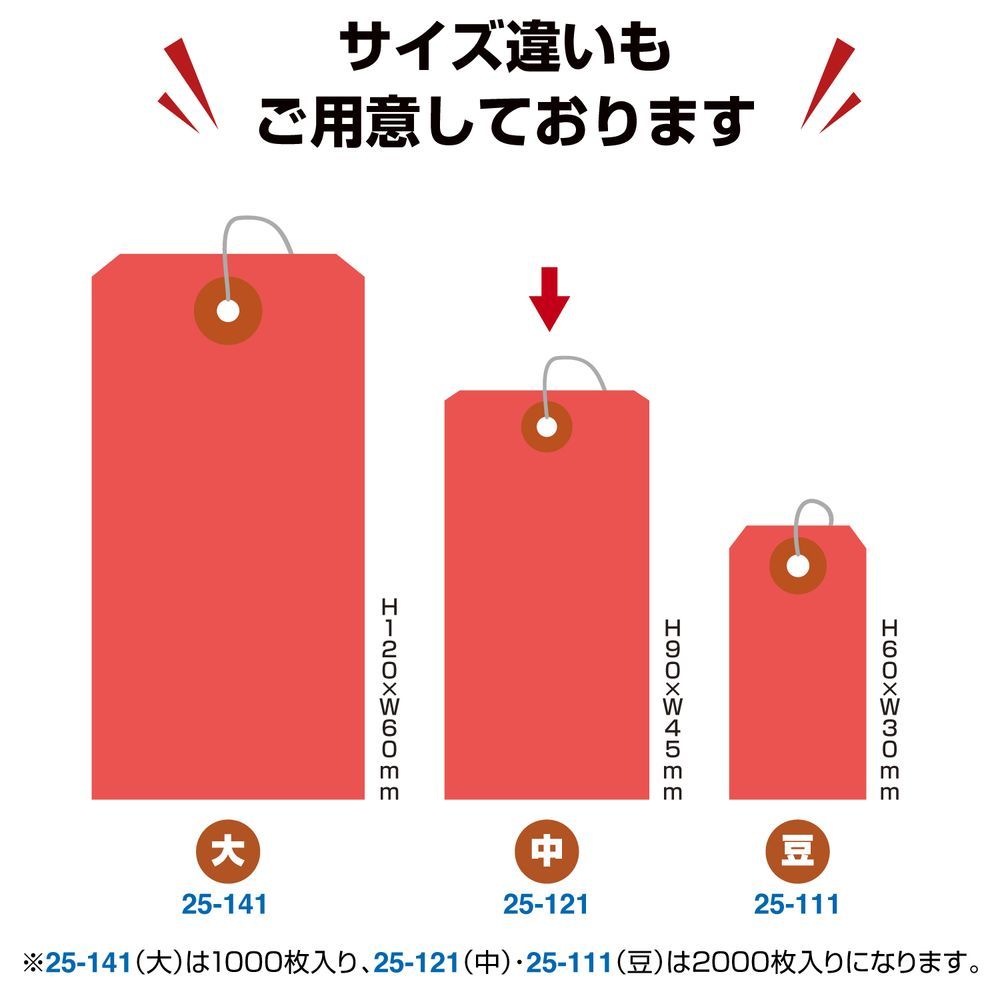ササガワ 針金付き 荷札 中 赤 一穴 入 帯 40束 25 121