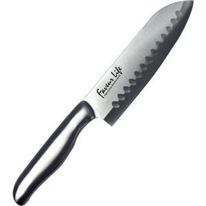 切れ味抜群のハイカーボンステンレス鋼の万能包丁。オールステンレス製なので、使いやすくて匂いや汚れがつきにくいのが特徴です。