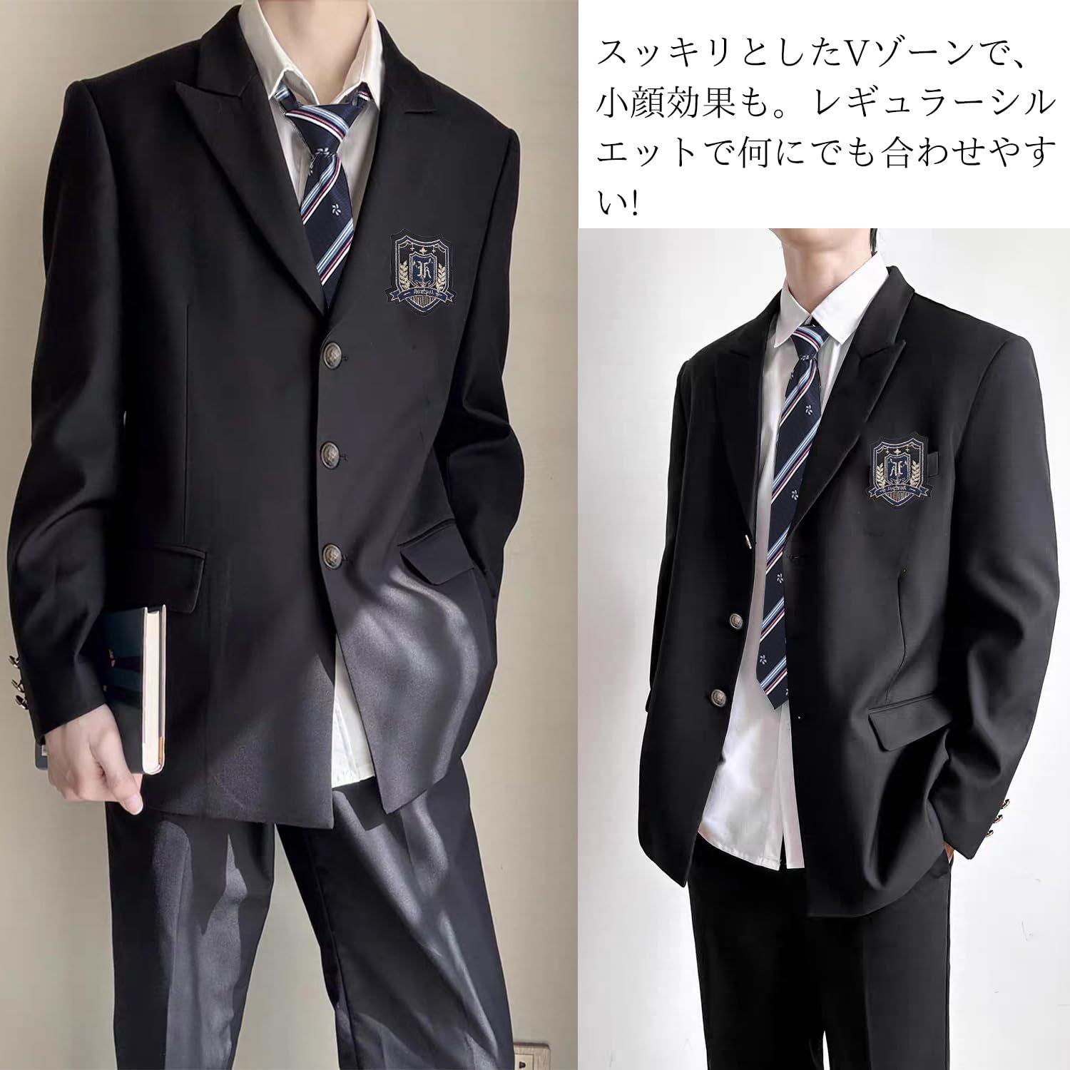 [AOTYP] 高校制服 男子 女子 制服 コスプレ 5点セット ブレザー 無地 65cm丈スカート ズボン 長袖シャツ ネクタイ バッジ JK DK制服 学生服 コスチューム レディース メンズ