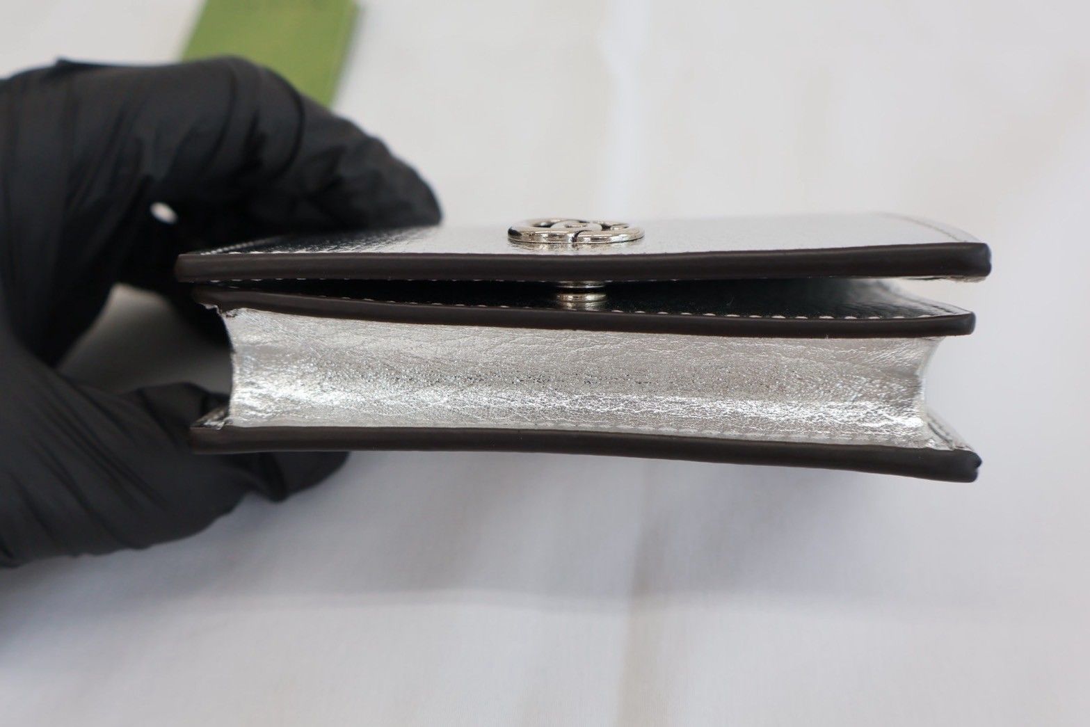 GUCCI GGマーモント ミニ 財布 456126 シルバー シルバー金具 レザー 2067