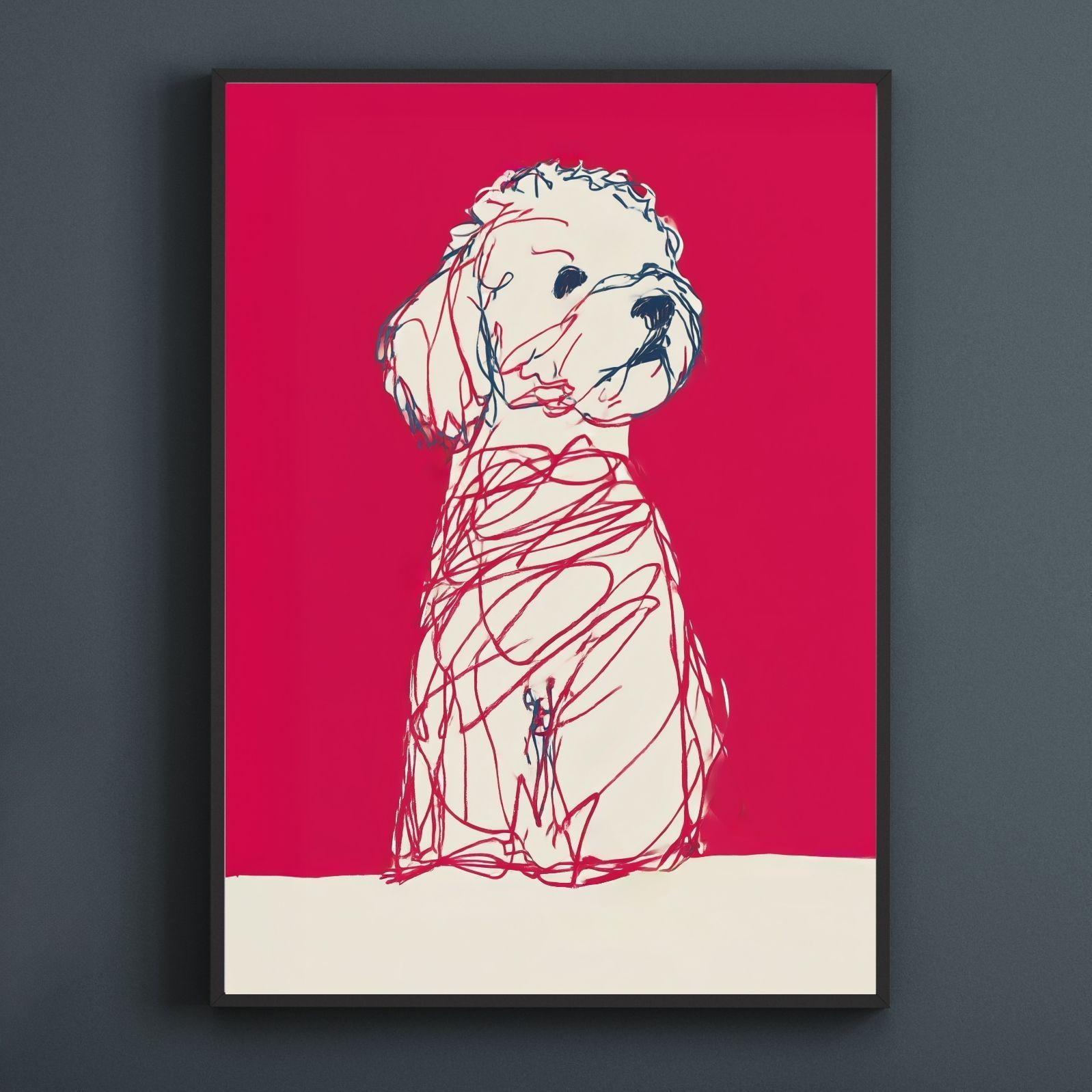 名入れOK Red Line - ビションフリーゼ犬 No.3 アートポスター ペットロス 北欧モダン ミニマルインテリア カフェスタイル