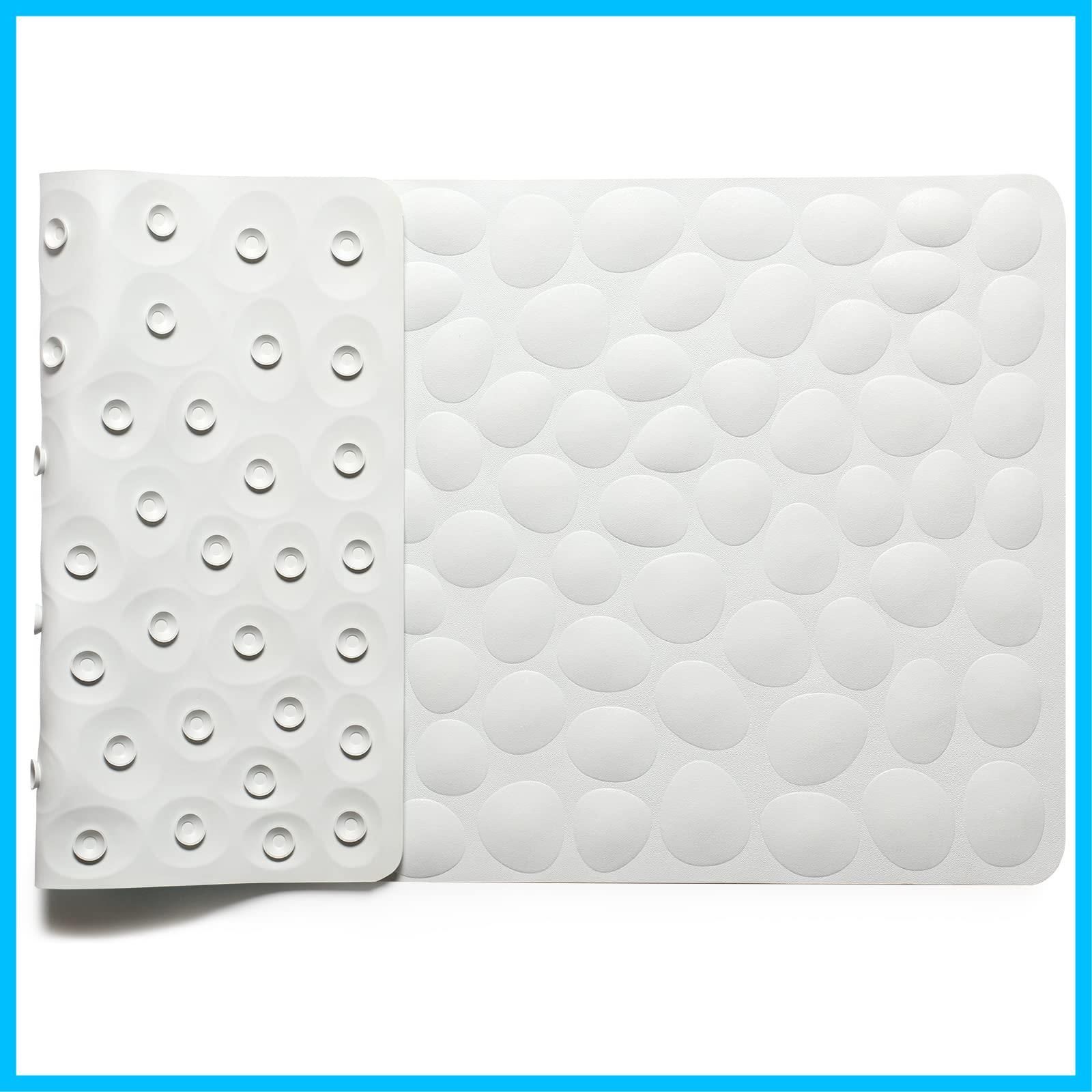 IRETION お風呂 すべり止めマット 浴槽 40×80cm ストーン柄 天然ゴム製 お風呂マット 介護 転倒防止 吸盤付き 柔らかい (ホワイト)