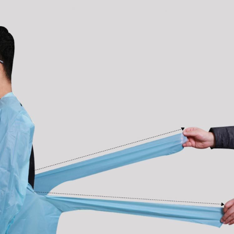 袖付き 使い捨て プラスチックガウン ブルー CPEガウン 男女兼用 指フック 200点セット 親指フック式 エンボス加工 使い捨てエプロン 医療 個別パッケージ 使い捨てガウン 防護 Fd 2 S 968