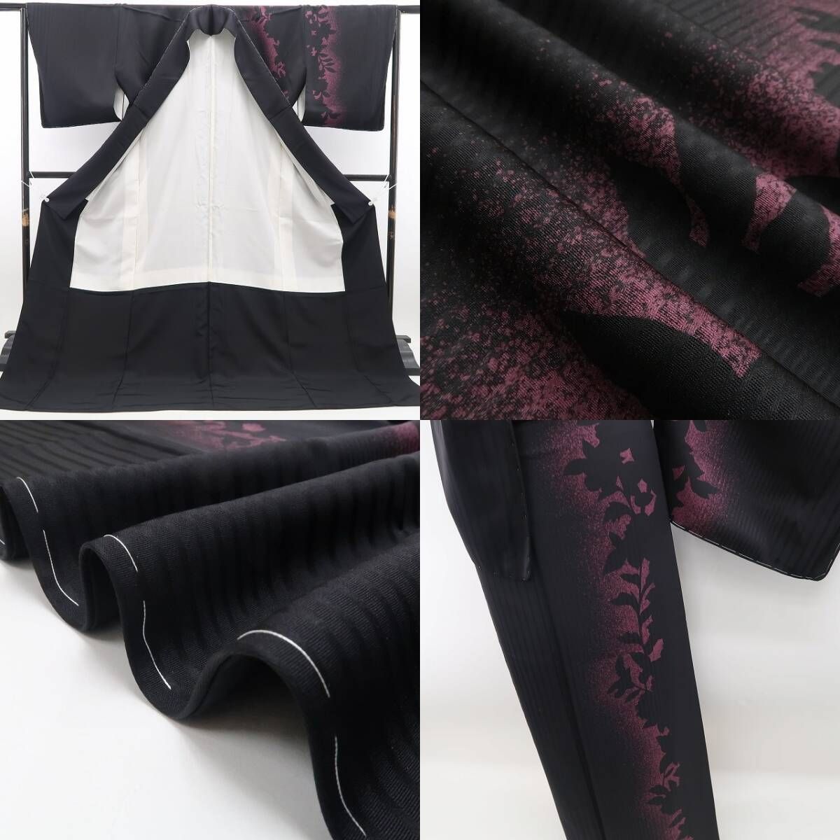 ❁tomihisa❁ 着物 正絹 仕付け糸付 トールサイズ 陰影が咲かせる 黒の花 付下げ 6724