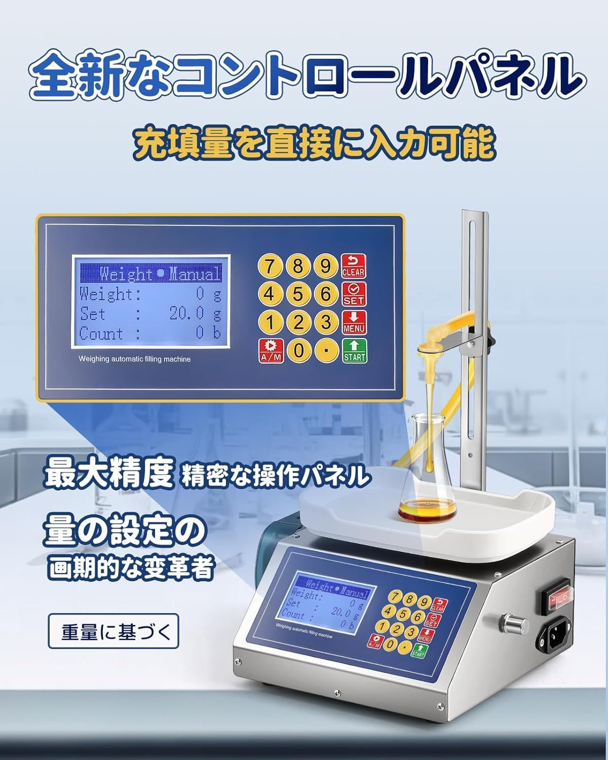 「自吸機能」液体充填機が自己吸い上げ機能つくので、注ぐ必要はありません。