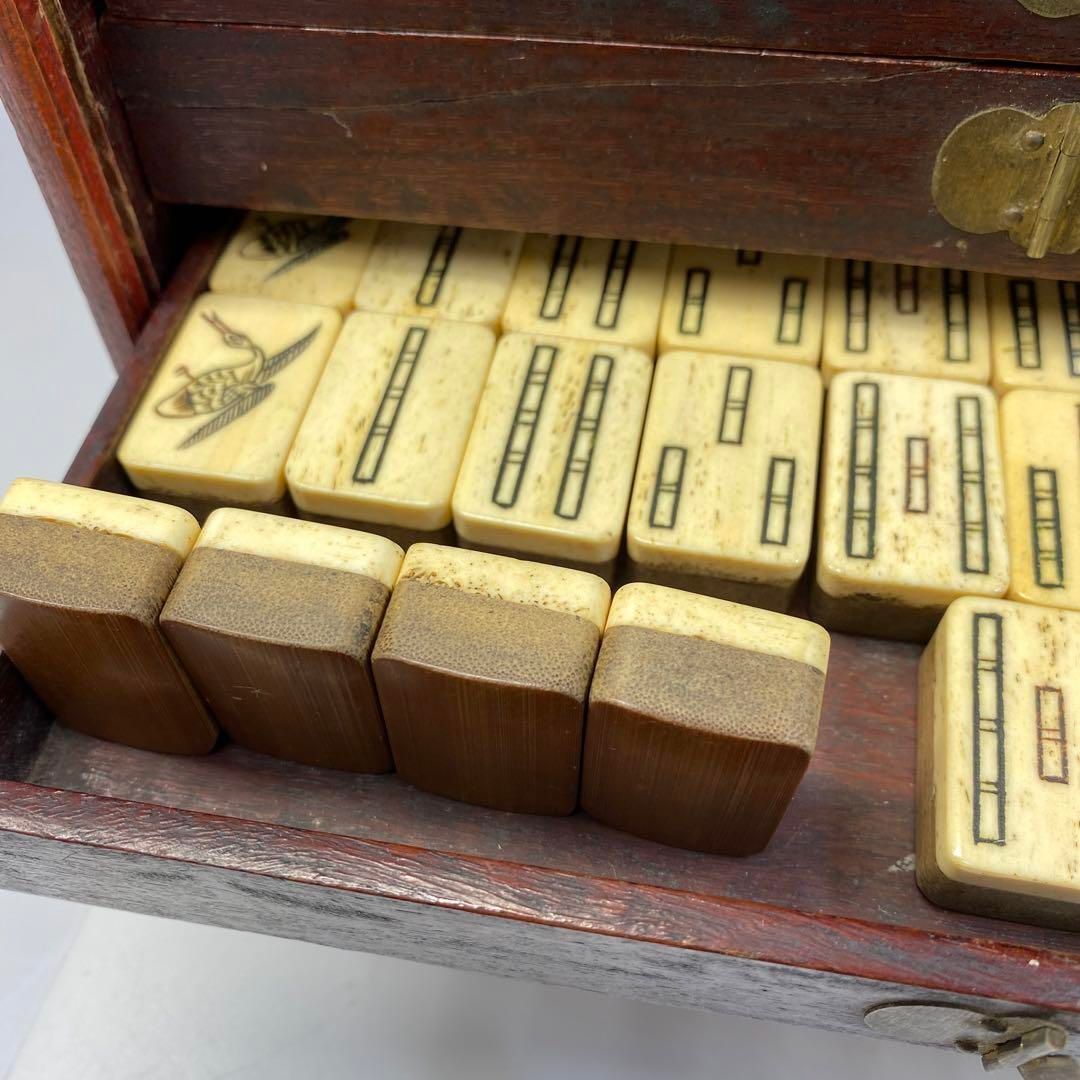 中国美術 骨製唐木箱 麻雀牌 台込2383 g 東Y 6 0708 トコヒ