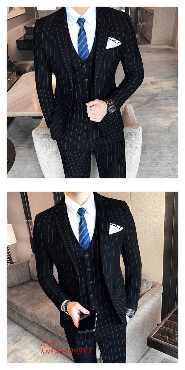 メンズスーツ スリム ストレッチ フォーマル 2つボタン 3点セット ネイビー グレー L M 3 XL ワインレッド 2 ブラック長袖 S kni 5 a 409953