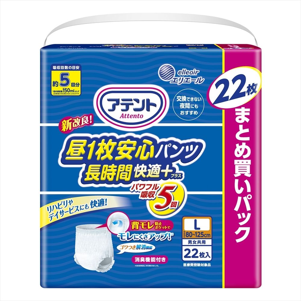 ■【商品内訳】:アテント昼1枚安心パンツ長時間快適L男女共用22枚×3点セット