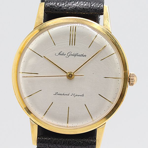 級 稼働 セイコー ゴールドフェザー K 18 750 YG 28.2 g 手巻 シルバー文字盤 メンズ腕時計 0077220 10 BJT SMZ