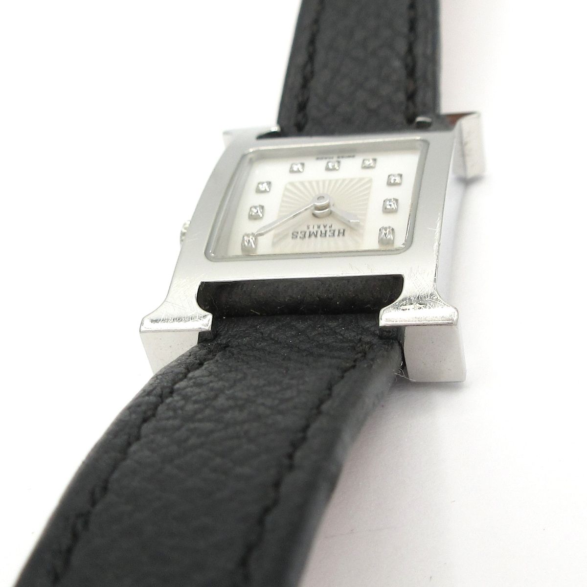 HERMES エルメス 腕時計 Hウォッチ ミニ HH 1.110 レディース SS シェル文字盤 11 Pダイヤインデックス A刻印 革ベルト ホワイトシェル