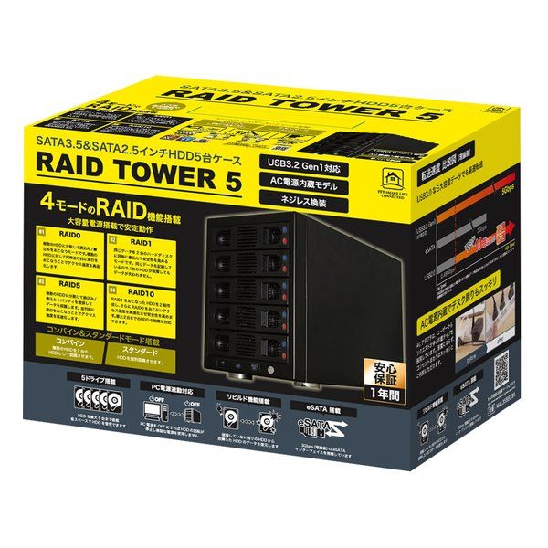4モードのRAID機能付きHDD5台ケース