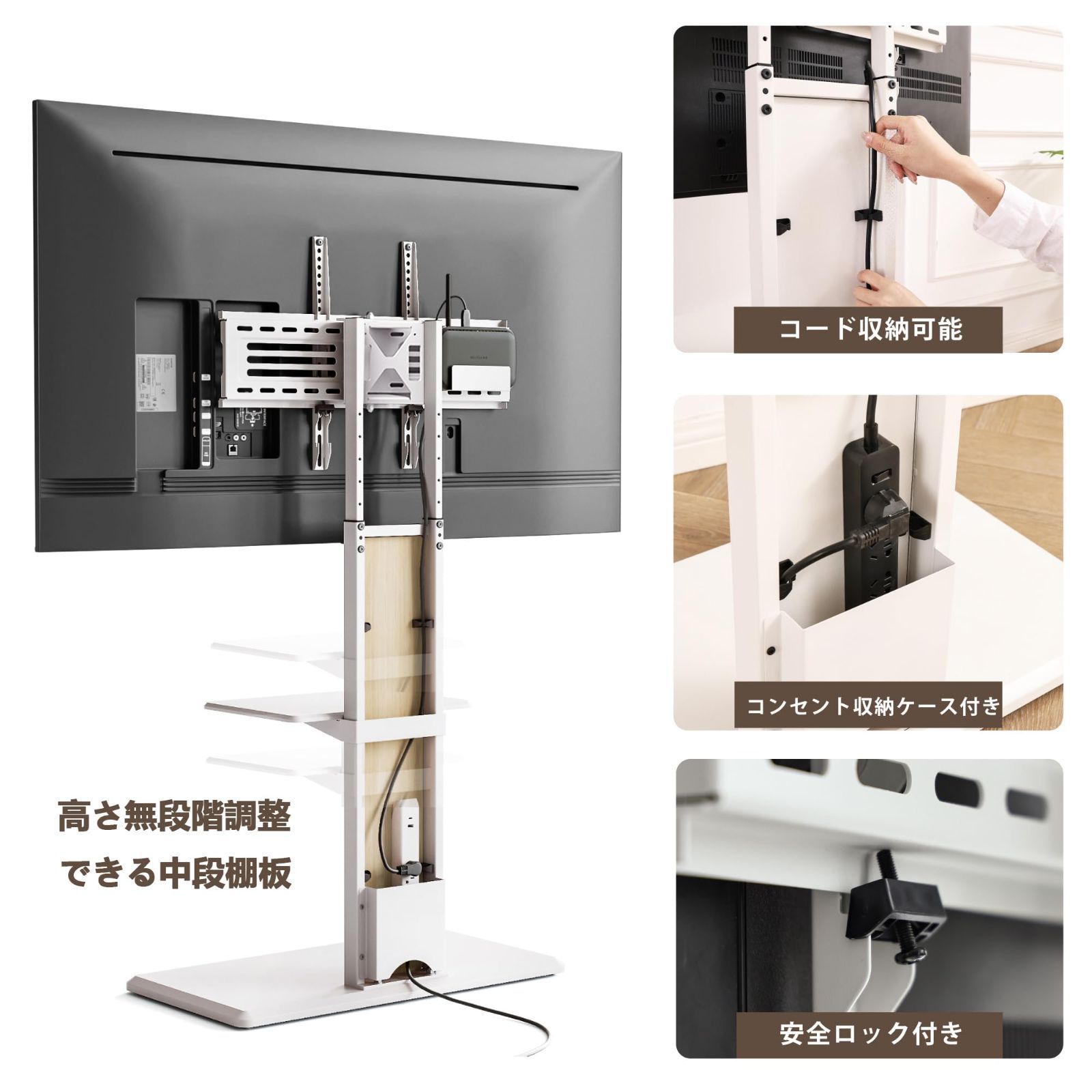 数量 中段棚一枚付 ホワイト 耐荷重40 kg 高さ角度調節 オーク色 背面収納付 テレビ台 裏表両用 壁寄せ 32-65インチテレビ対応 テレビスタンド FITUEYES