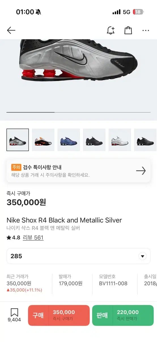NIKE ナイキ ショックス R 4 黒 アン メタリック シルバー 285