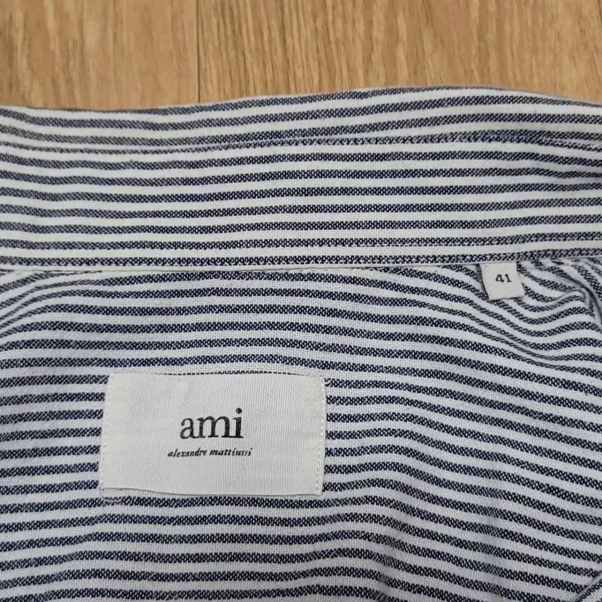 アミ ストライプ シャツです。涼しい ストライプ パータンに アミ シグネチャー レッド ハート ロゴが POINTで 入って あります。無難な デザインで どんな コーデにも よく 合います。コメント 無ければ 馬狼 照英 安全決済してください!