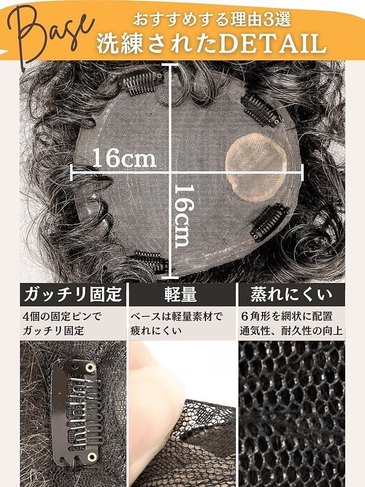 「3つの特徴」(6) 「特徴1」つむじや頭頂部周りの薄毛や生え際の白髪にお悩みの、ウィッグ、付け毛、カツラ初心者に最適の商品。
