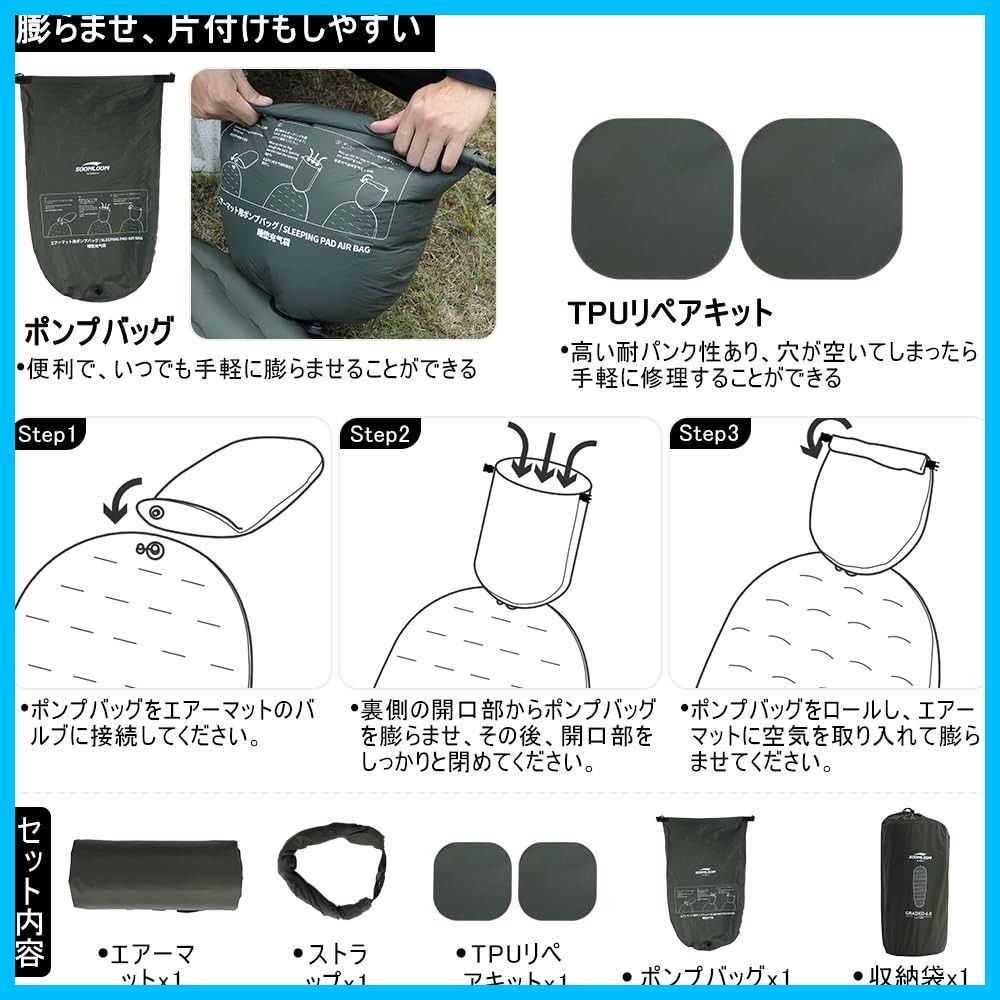 SoomloomキャンプエアーマットGRADED6.0高R値断熱低温耐寒空気入れポンプバッグ付きコンパクト軽量600gポータブルエアーベッド車中泊登山防災地震アウトドアキャンプインフレーターマット (アーミーグリーン)