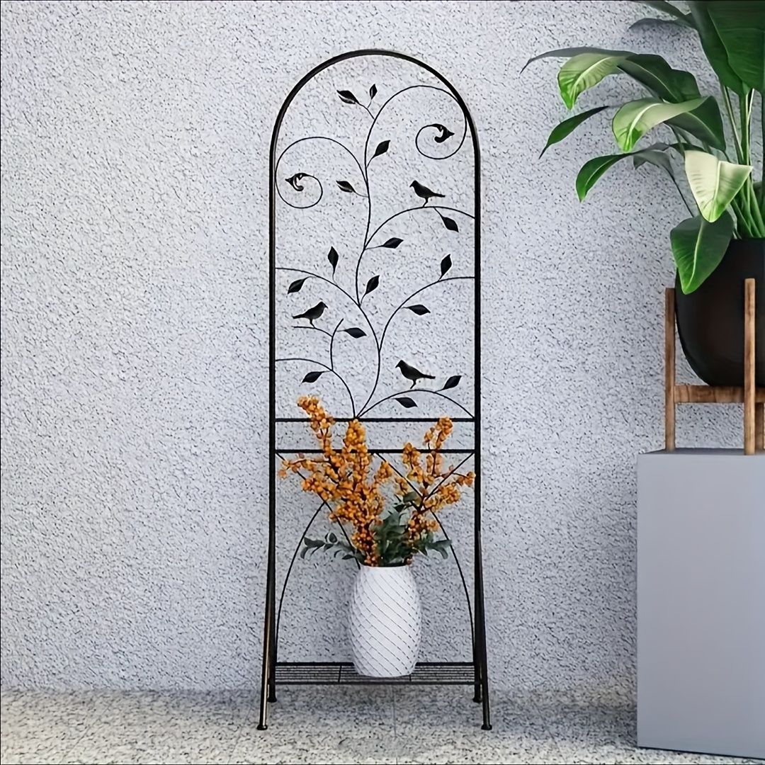 ガーデンフェンス 180 cm 折りたたみ式 つる植物スタンド リーフ バードモチーフ ヴィンテージ風 室内 屋外用 装飾トレリス 薔薇 アイビー クレマティス向け ガーデンギフト ガーデントレリス メタリック仕上げ ホームガーデナー向け ブラック