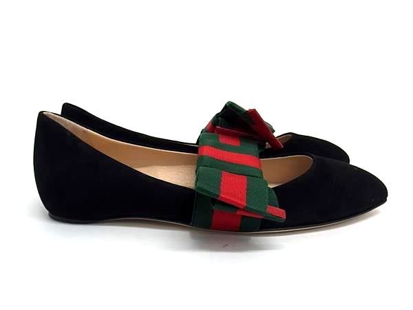 GUCCI グッチ シェリーライン スエード リボン パンプス 表記サイズ 35 1 2 約22.5 cm 靴 シューズ ブラック系 FU 2140