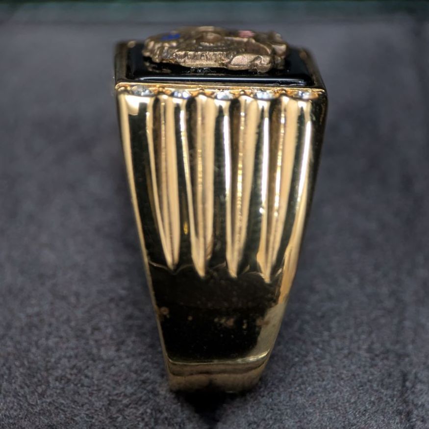 本品はアメリカ国内向けに製造されたミリタリージュエリーで、カレッジリングやクラスリングに通じる重厚な造形が特徴。