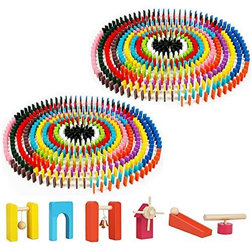 Felimoa ドミノ 木製 ドミノ倒し 積み木 障害物 ドミノピース 仕掛け付 2000個セット
