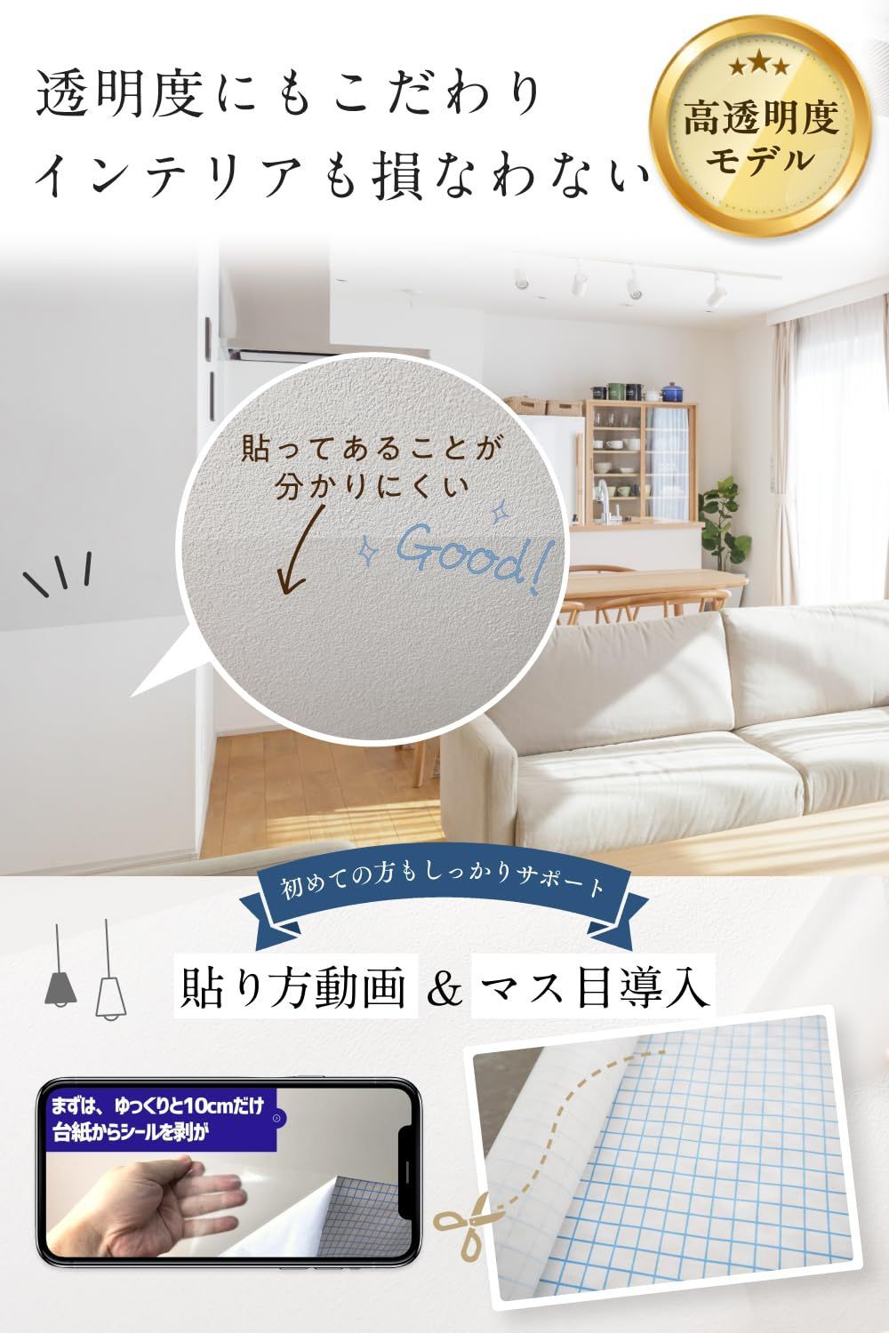 【保護猫施設導入モデル/貼り方動画・説明書付】壁紙保護シート 猫の爪とぎ防止 [高粘着力×壁の損傷リスク軽減両立のアクリル製粘着剤採用] (90l)