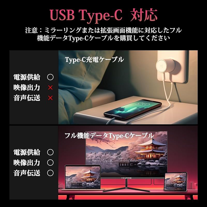 Minifire 27インチ モニター WQHD 2 K IPSパネル スピーカー内蔵 ブルーライト軽減 フリッカーフリー 高色域対応sRGB Adaptive Sync フレームレス HDMI DP Type-C HDMIケーブ