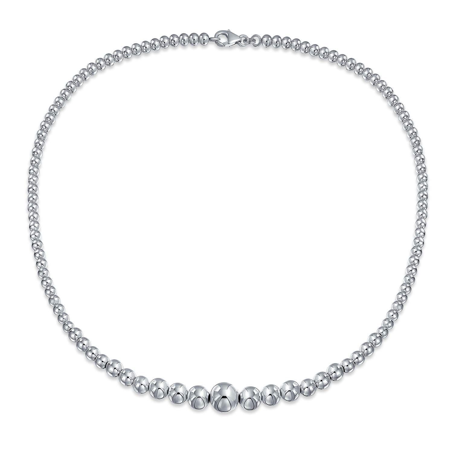 [Bling Jewelry] 伝統的なクラシックシャイニー磨かれた.925スターリングシルバーは、女性のためのラウンド軽量ビーズボールストランドネックレス16、18インチ手を絞った卒業しました。