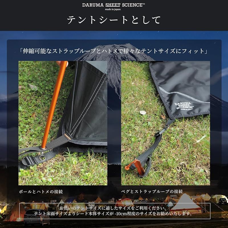 商品名:【日本工房製】DARUMA SHEET|2色×7サイズ展開 グランドシート 防水 230×260cm 大判 厚手 レジャーシート テントシート(マットブラック, 230cm×260cm)