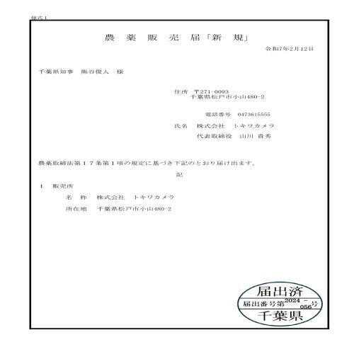 薬剤登録 農林水産省登録第24274号