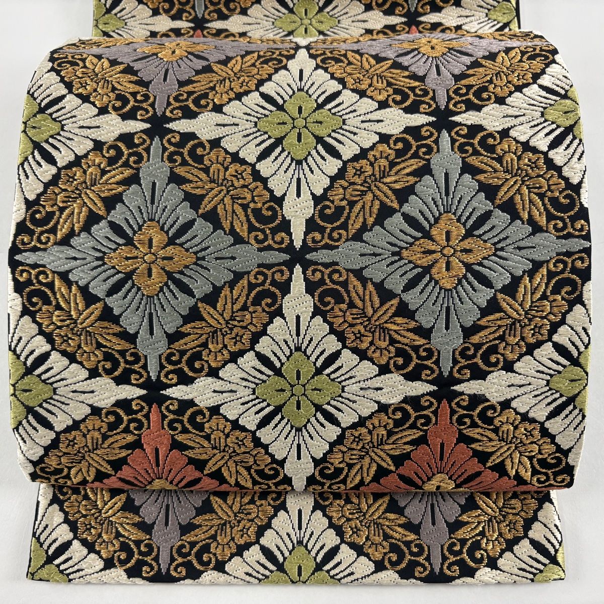 袋帯 瑞祥唐織 七宝 華文 唐織 金糸 黒 六通 正絹