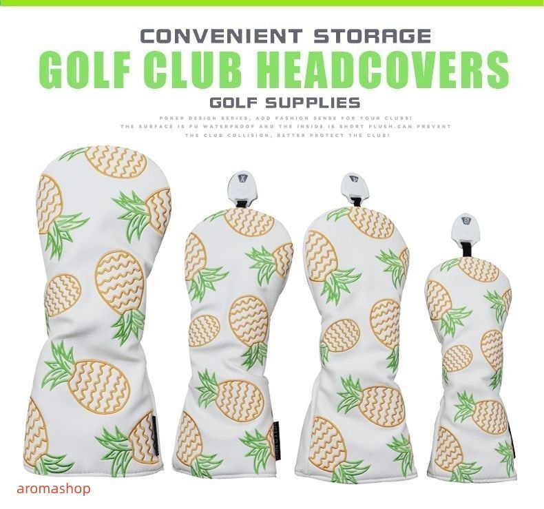 4点セット パイナップル柄 ゴルフ ヘッドカバー 3.5共通FW DW UT パター ドライバー