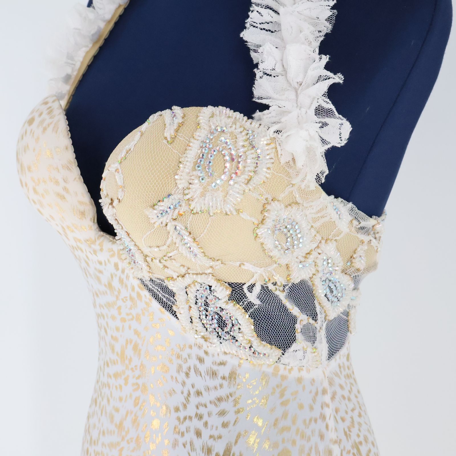 エジプト製 ベリーダンス用衣装 ホワイト×アイボリー EMANZAKI イスカンダラーニドレス ラインストーン ミラーヤ 白 レース