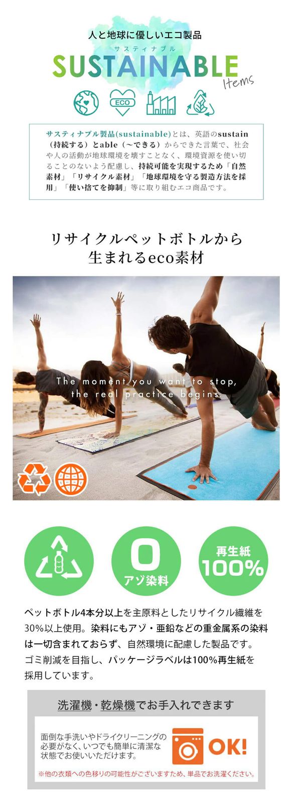 汗による滑り・ズレを解消したストレスフリーヨガラグ。汗を沢山かくヨガシーンに今や欠かせないヨガラグ。すばやい吸汗性はもちろん、生地の表面は湿った状態でグリップ力がさらにアップ。