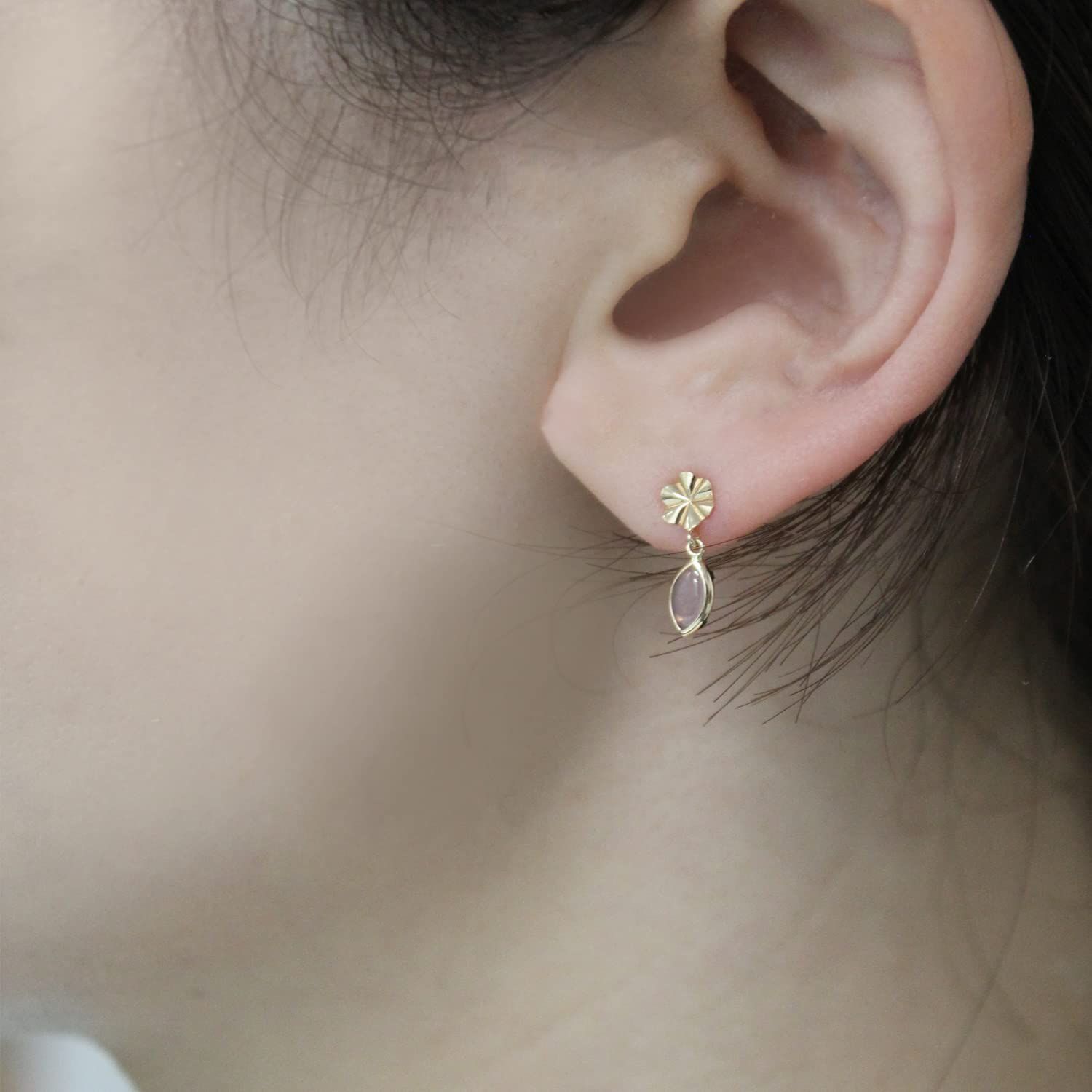愛らしいお花モチーフとローズクォーツの淡い色が優しい雰囲気を漂わせています。程よいマーキスのサイズで季節問わず楽しめます。古くから世界中で愛されているイエローゴールド。華やかな色味が人目をひき、ワンランク上のおしゃれを楽しめます! ご自分へのご褒美ジュエリーや大切な人へのギフトにぴったりです。