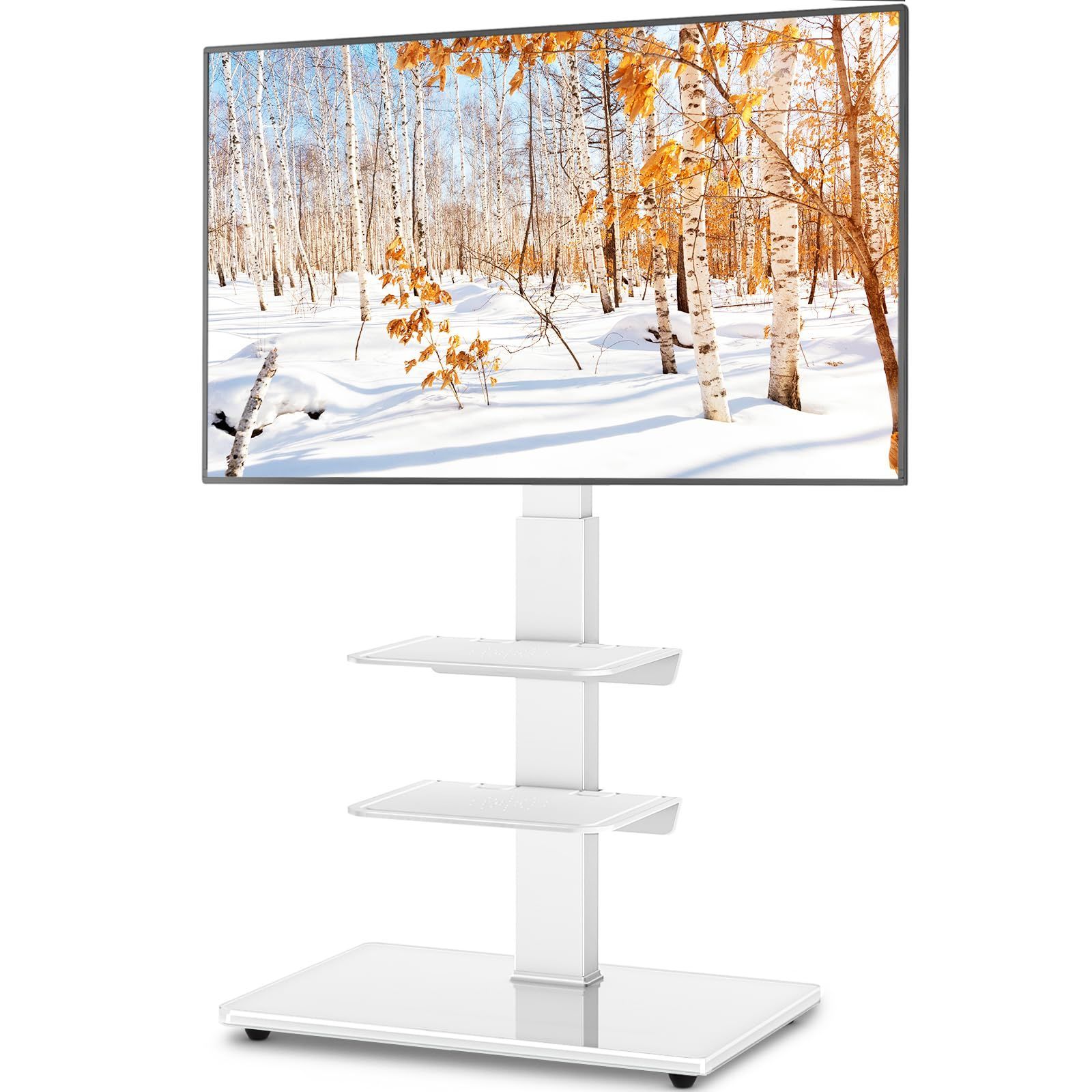 Rfiver テレビスタンド tvスタンド テレビスタンドロータイプ 32-70インチ対応 3段 高さ調整可能 ラック左右回転30° 強化ガラス 耐荷重50 KG ホワイト 家用 展示用