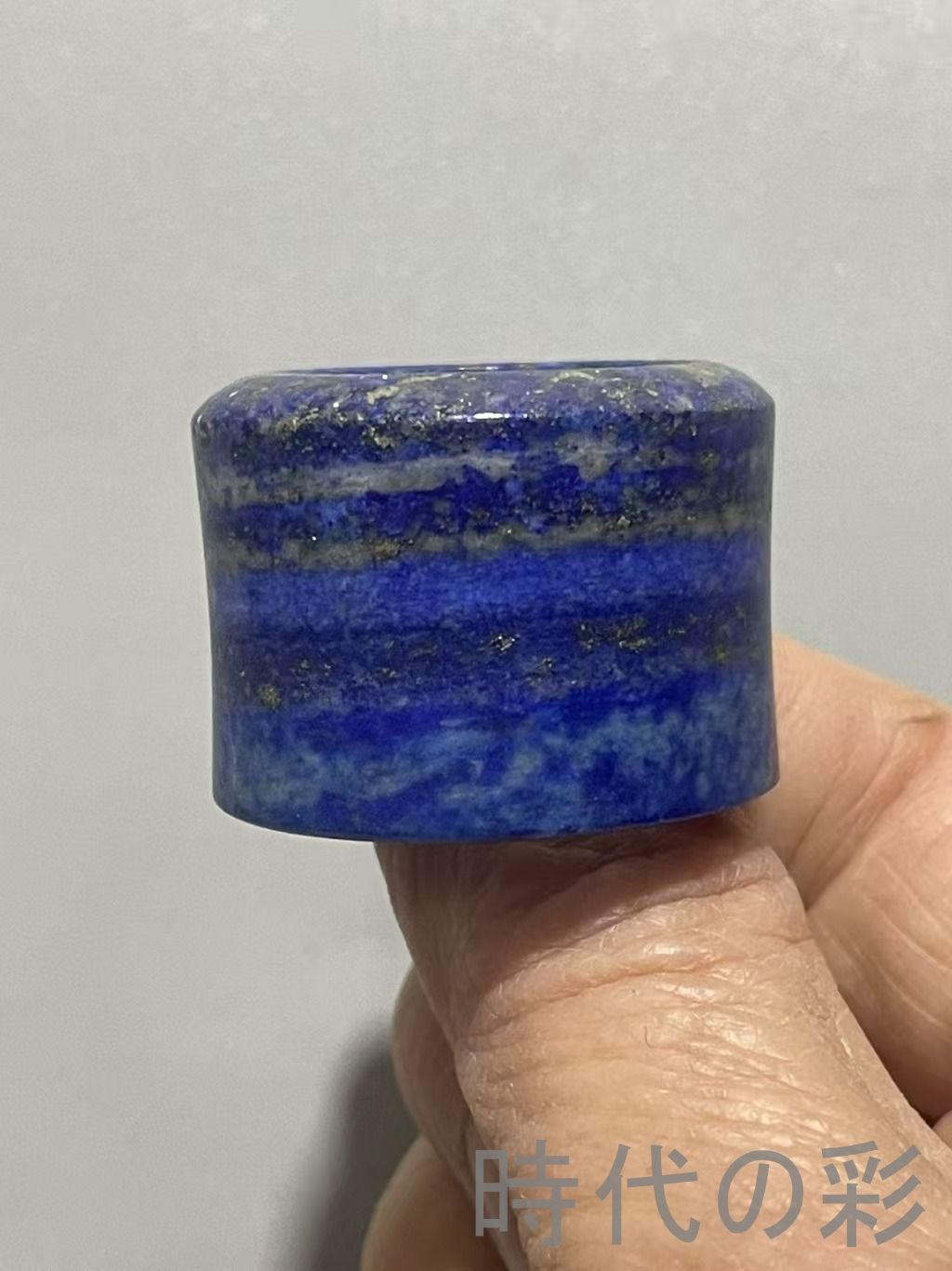 清代の青金石による?指です。鮮やかな藍色と天然石の斑点が魅力的で、佩戴にも適した古美術品です。
