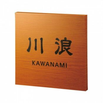 車やビルの内装に使われている木目転写を、屋外用のアクリルに施してトップコートで保護した素材の表札です。書体を選んでお好みのデザインにできます。