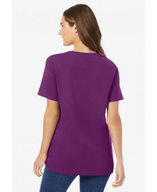 ウーマン ウィズイン レディース シャツ トップス Plus Size Perfect Short-Sleeve V-Neck Tee Plum purple