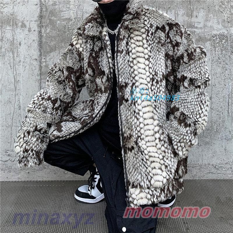 フリースジャケット メンズ 蛇柄 立ち襟 かっこいい ボアジャケット アウトドア ブルゾン 防寒 厚手 裏ボア アウター あったか 裏起毛 保温 kni 4 a 504983