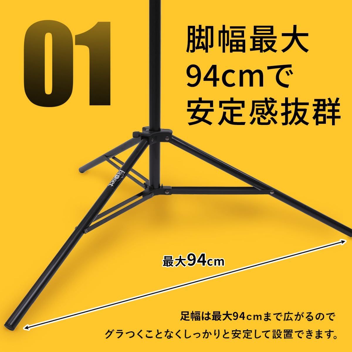【安心安全のエアークッション機能付き】エアクッション付で安全面を考慮。ポールがゆっくり下がる構造なので手を挟まず安全に使用できます。また、脚幅は最大105㎝まで広がるのでグラつくことなくしっかりと安定して設置できます。頑丈で耐久性に優れた造り。脚のポール幅21.9㎜、支柱ポール幅29.6㎜。