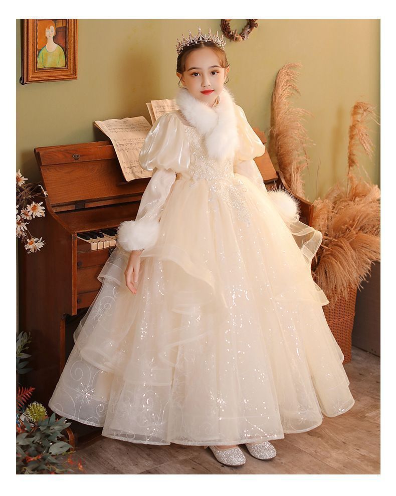 ロングドレス マフラー付き 秋冬 フォーマル 子供 ドレス 女の子 キッズ ピアノ 発表会 演奏会 フォーマルワンピース パーディー 上品 エレガント ジュニア ドレスxz 0523
