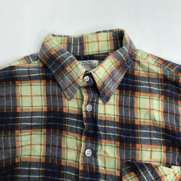 70 s-80 s Vintage Sears シアーズ PERMA-PREST 長袖フランネルシャツ メンズL 青×黄系チェック柄 コットンポリ Tops Shirts sBH 937