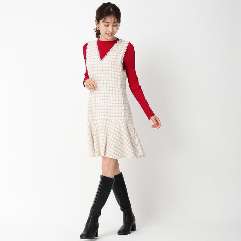 ミッシュマッシュ ジャンパースカート ミニワンピース ワンピース ツイード ノースリーブ レイヤード 美シルエット ポケット付き レディース BLACK