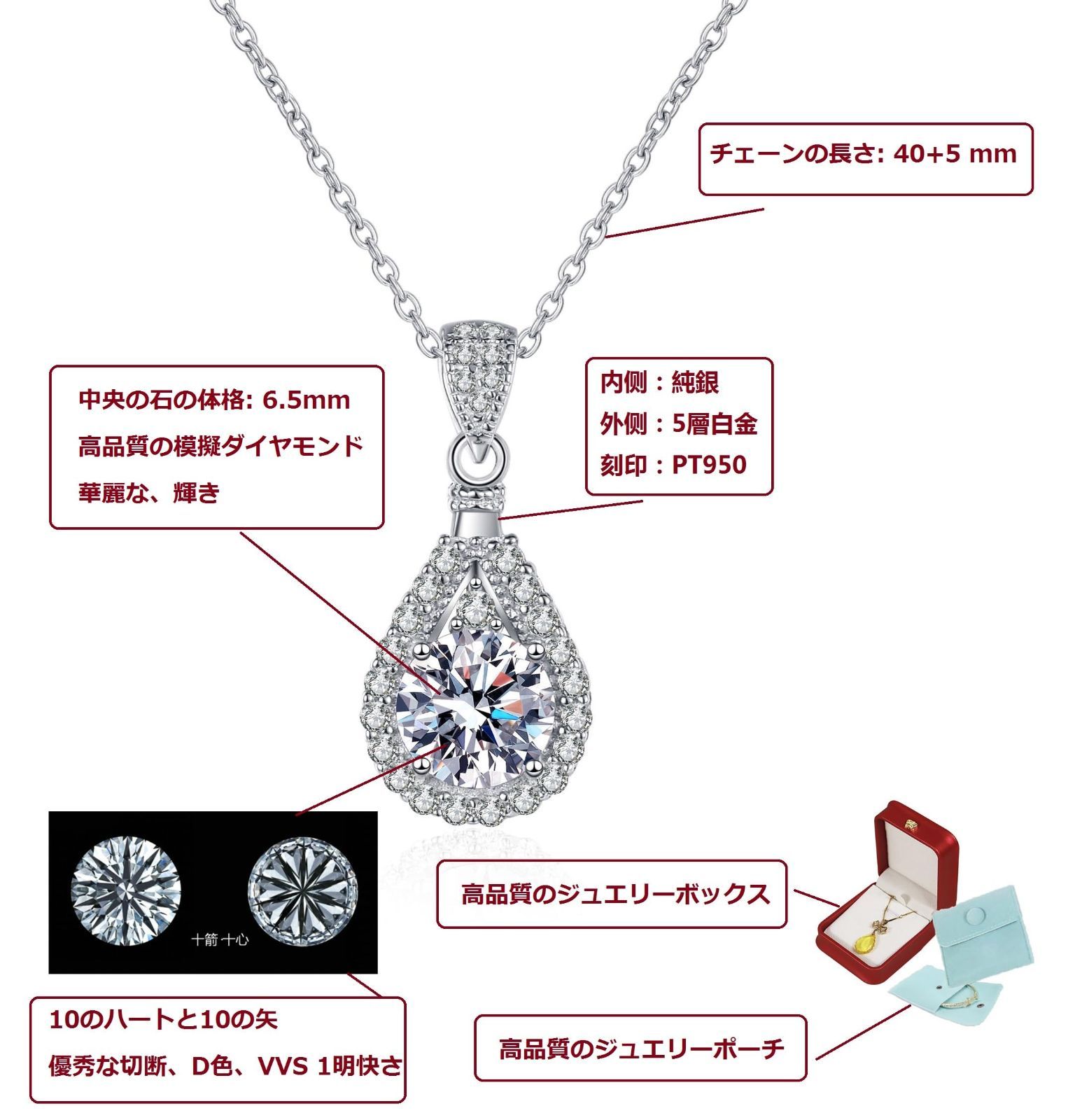 【 素材 】: 内:純銀製,外:5層プラチナ,この人気のある女性のネックレスの品質は高く、アレルギーの心配はありません、そして5層のプラチナはペンダントをより華麗で価値のあるものにします、この純粋な銀のネックレスはニッケルフリー、鉛フリー、カドミウムフリー、抗アレルギーおよび抗変色