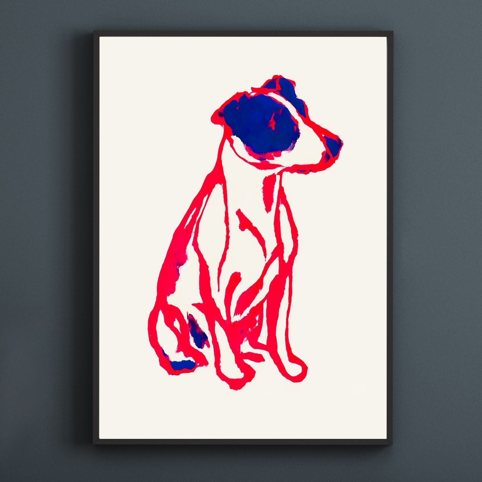 名入れOK Red Line - ジャックラッセルテリア犬 No.2 アートポスター ペットロス 北欧モダン ミニマルインテリア カフェスタイル