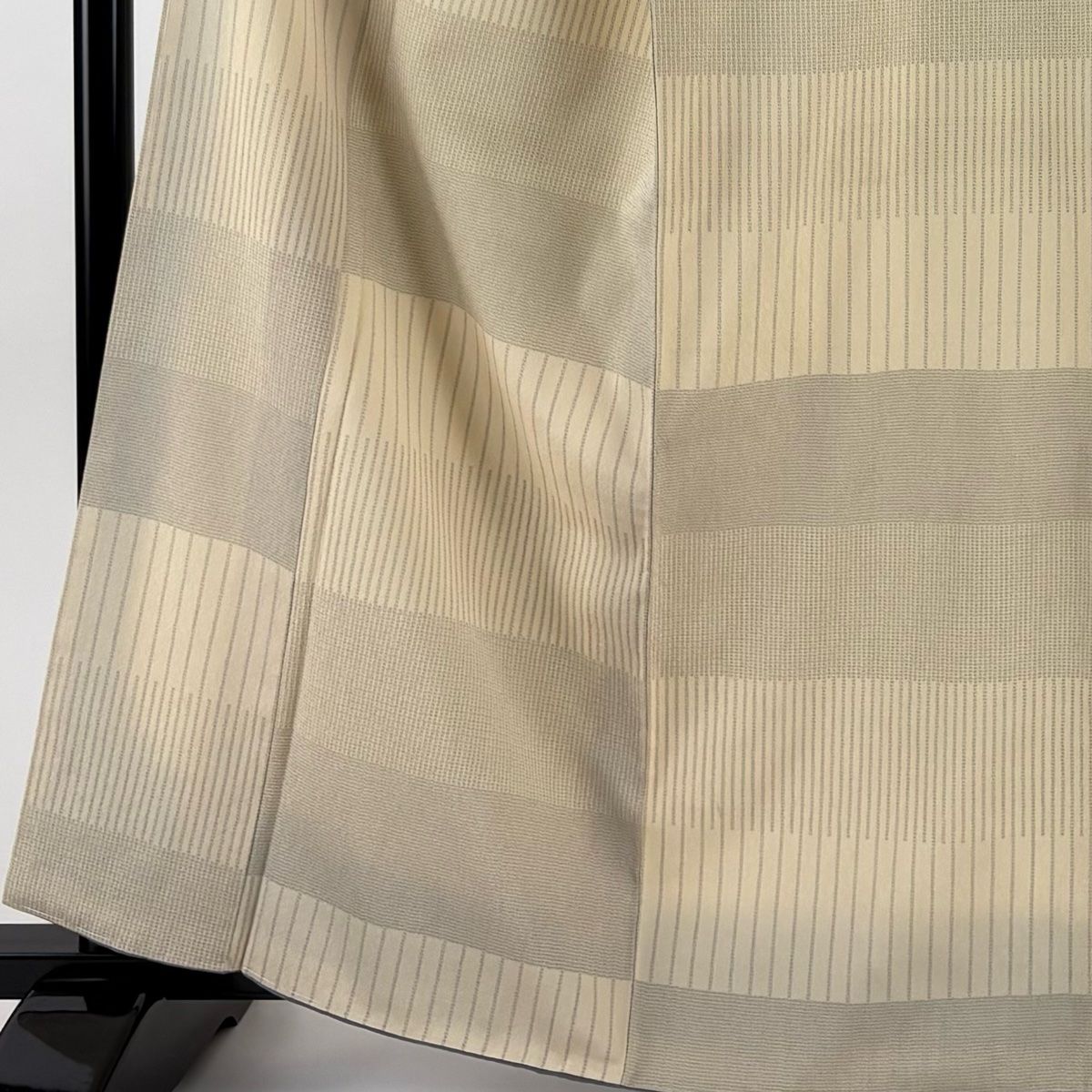 お召 身丈162.5 cm 裄丈64.5 M 袷 縞 幾何学 ベージュ 正絹 秀品