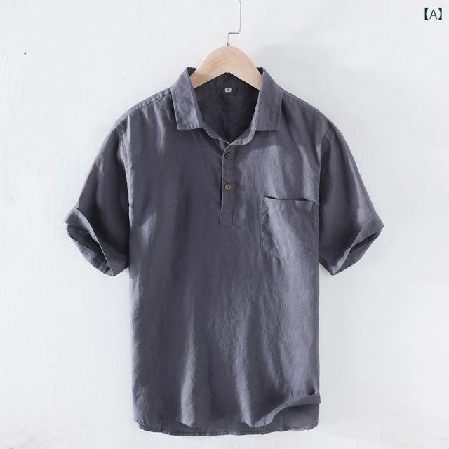 2 XL メンズ ファッション 服 オシャレ シンプル 大人 かっこいい 大きいサイズ ストリート 紳士服 ワーク シャツ 半袖 リネン スリム カジュアル
