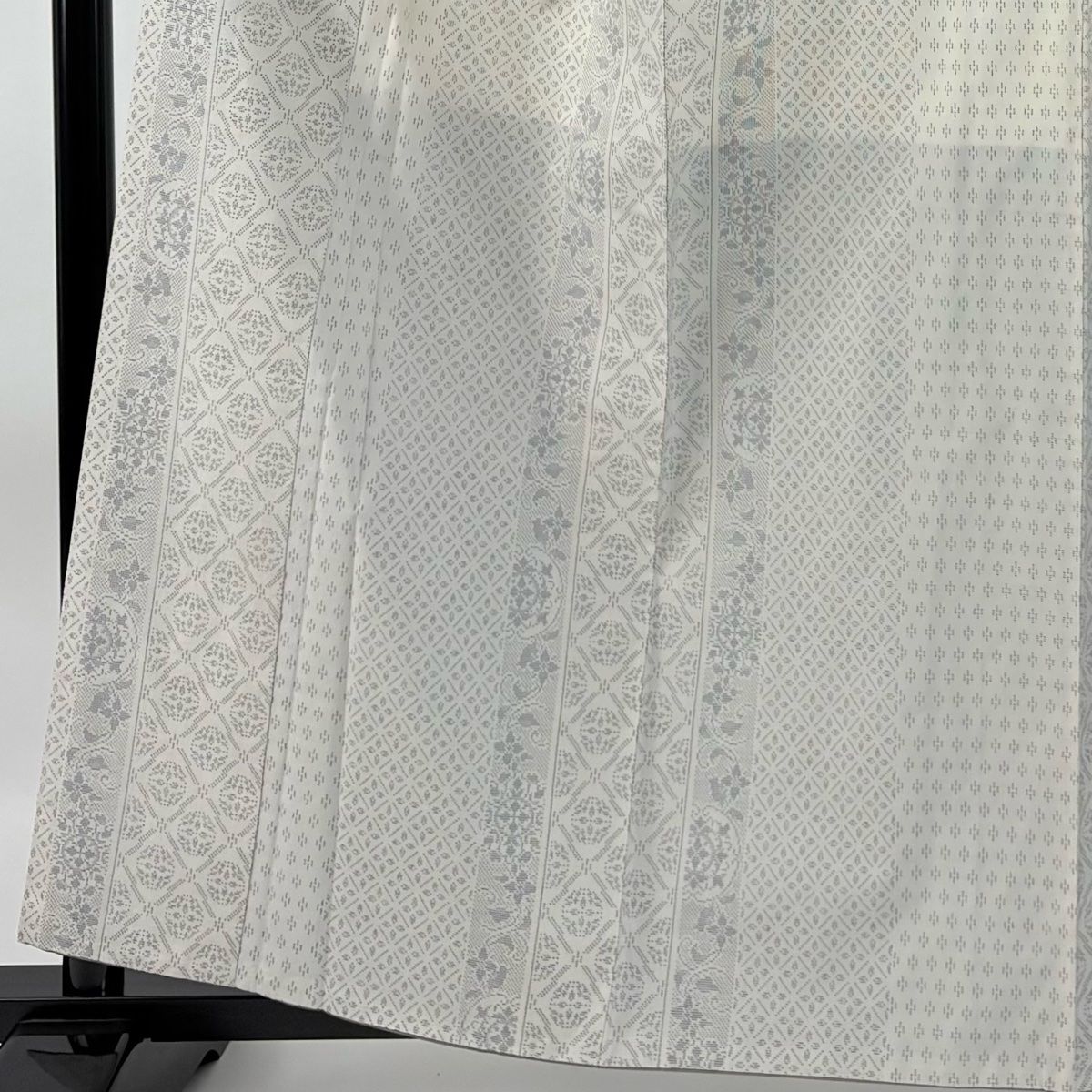 紬 身丈160 cm 裄丈63.5 S 袷 袋帯セット 花唐草 格天井 灰白 正絹 秀品