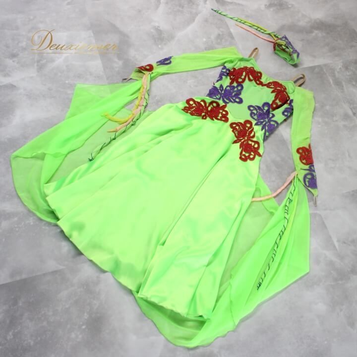 #社交ダンス #ダンス衣装 #社交ダンス衣装 #ドレス #ファッション #日本製 #蛍光グリーン #ステージ映え #ダンスコスチューム #トルソー #おしゃれ #ダンス用 #コスプレ #チョーカー #パーティードレス #伸縮性 #華やか #ダンススタイル #フロート #ENUTSU